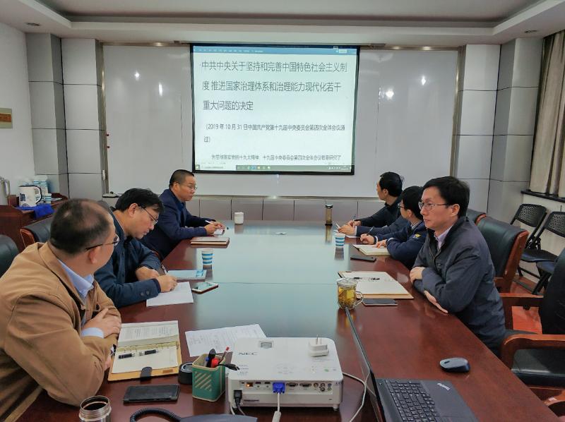 11月19日上午,工程設(shè)計(jì)公司召開黨總支支委會暨公司領(lǐng)導(dǎo)班子會深入學(xué)習(xí)黨的十九屆四中全會精神,總支副書記孫峻主持會議,帶領(lǐng)大家學(xué)習(xí),重點(diǎn)對《中共中央關(guān)于堅(jiān)持和完善中國特色社會主義制度、推進(jìn)國家治理體系和治理能力現(xiàn)代化若干重大問題的決定》(以下簡稱“決定”)作了深刻而細(xì)致的解讀。