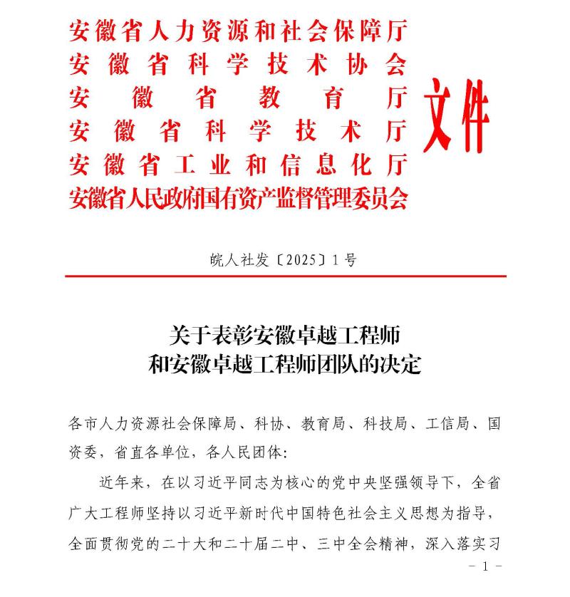 近日,安徽省人力資源社會(huì)保障廳、省科學(xué)技術(shù)協(xié)會(huì)、省教育廳、省科技廳、省工業(yè)和信息化廳、省人民政府國有資產(chǎn)監(jiān)督管理委員會(huì)聯(lián)合開展“安徽卓越工程師”“安徽卓越工程師團(tuán)隊(duì)”評(píng)選表彰活動(dòng)。經(jīng)層層遴選,裝備集團(tuán)所屬合肥中亞建材裝備有限責(zé)任公司王國慶憑借突出的工程技術(shù)成就,榮獲“安徽卓越工程師”榮譽(yù)稱號(hào)。
